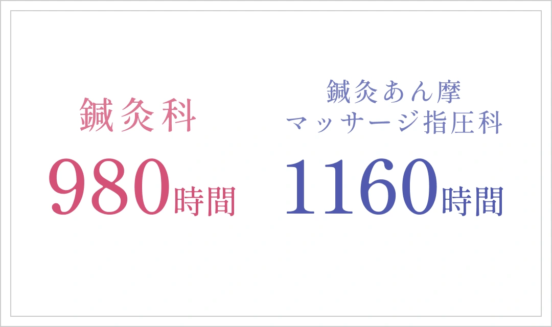 鍼灸科980時間、鍼灸あん摩マッサージ指圧科1160時間と