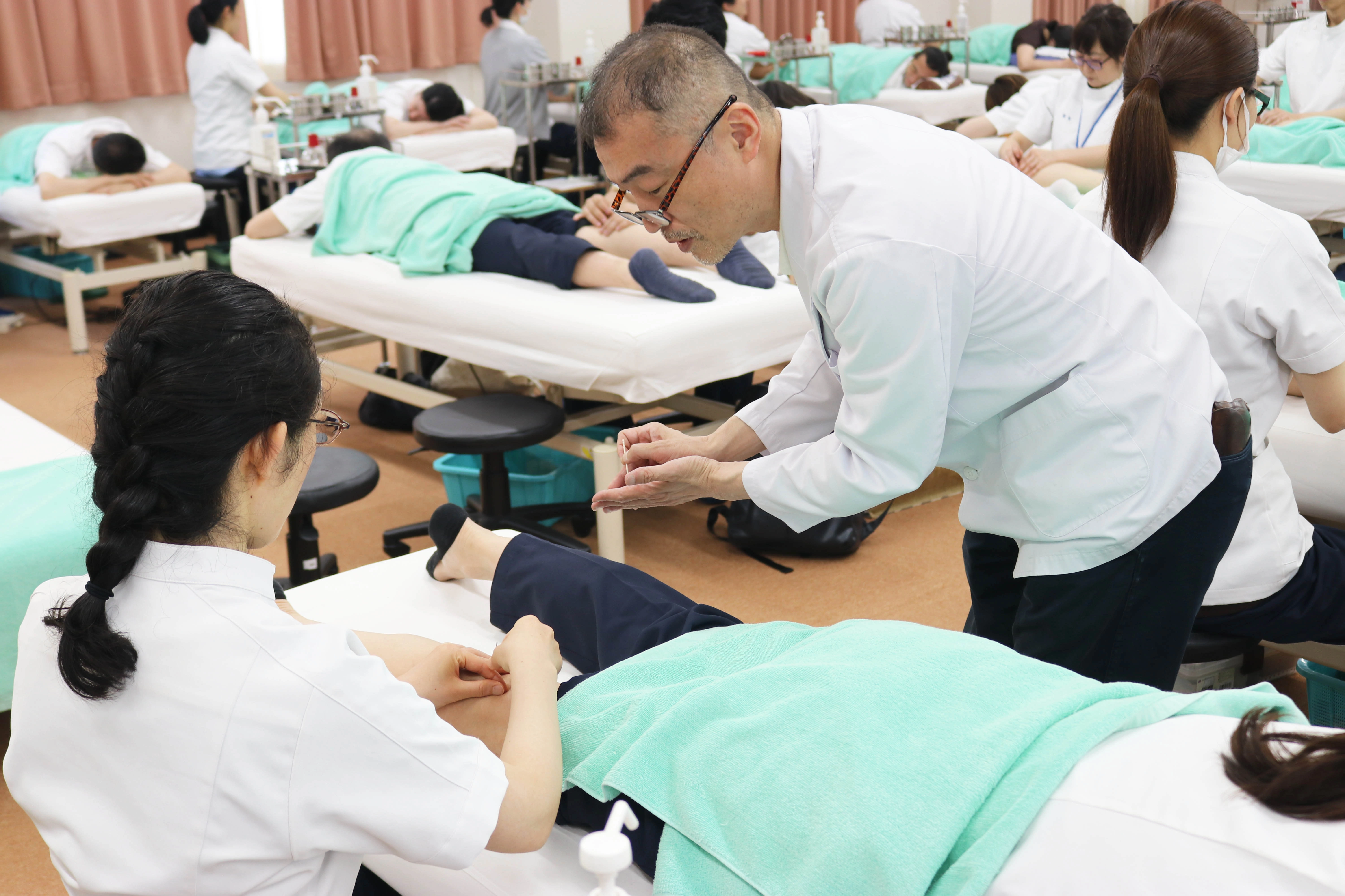 鍼灸科の総実技授業時間は980時間、鍼灸あん摩マッサージ指圧科1160時間と他校より多く学べ、卒業後に鍼灸師・あん摩マッサージ指圧師として即戦力として活躍することができます。(近隣にありますA校の鍼灸実技授業時間数は800時間程度です)また、平日毎日教員が立ち合う「実技室開放」を活用すると(平均300時間/3年間を利用)、更なるスキルの向上が可能となります。実技の時間を多く学ぶことは患者さんへの対応力が違ってきます。