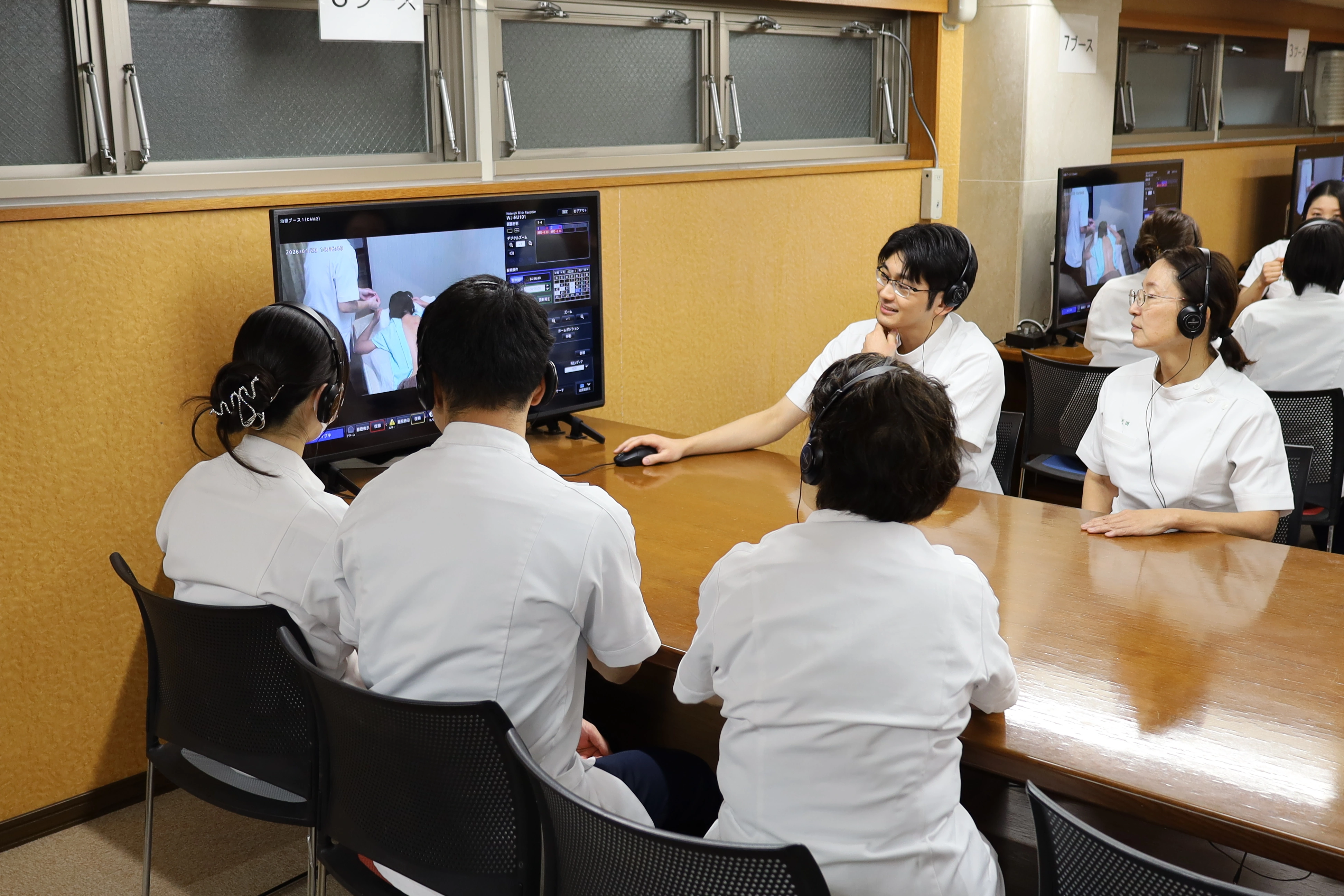 教員立ち合いのもと、グループ形式で1名が施術者となり、一般の患者さんに対して医療面接から身体診察、施術まで行います。その様子を他の学生は音声・映像システムを通じてリアルタイムで視聴します。施術後は施術の評価はもちろん、接遇やことば使い等も評価に加えて、患者さんからのアドバイスもいただくことができます。そして、施術の様子を視聴していた教員やクラスメートからのフィードバックを通じて、新たな気づきを客観的に得ることが出来ます。