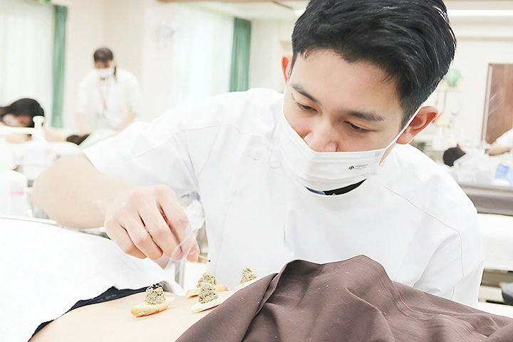1年生での徹底した基礎実技終了後、2年生・3年生では、伝統鍼灸(日本独自の鍼灸)、美容鍼灸、中医鍼灸、小児ハリ、ささないハリ、鍼通電療法(パルス)等あらゆる鍼灸の「技」を学び、卒業後、開業や就職先での患者さんのニーズに合った施術法を選択し、活用することができます。