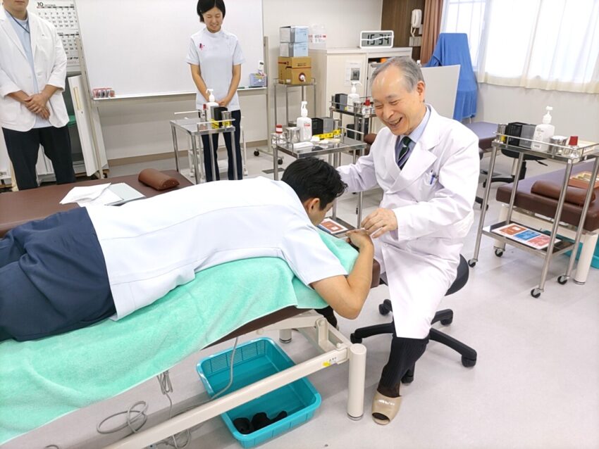 教員や在校生が「遠隔誘導法」を行います。今日は斎藤講師指導から教員へのレッスンが行われました。